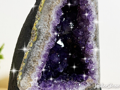 外側はカタい岩に覆われているのに、内側は美しいアメジストの結晶が広がり、静かで神聖な空間がぽっかりと開いている。