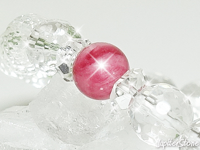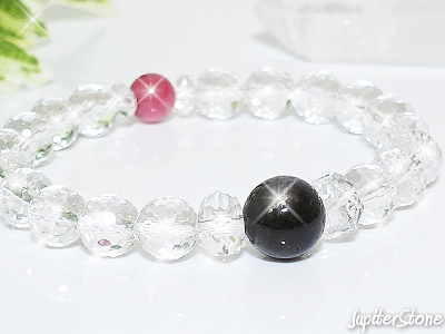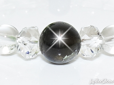 そのエネルギーを増幅させるため、ブレスレット部分に極めて透明度の高い「ハイクォリティ水晶」ミラーボールカット8mmを使用しています。