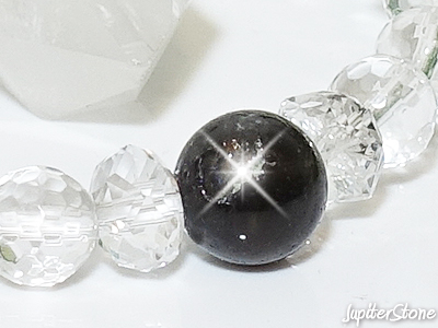 仕様&石のクォリティ、サイズ | 仕様:山梨県黒平産・黒水晶+ハイクォリティ水晶(ミラーボールカット)+ラウンデル&ロンデル |